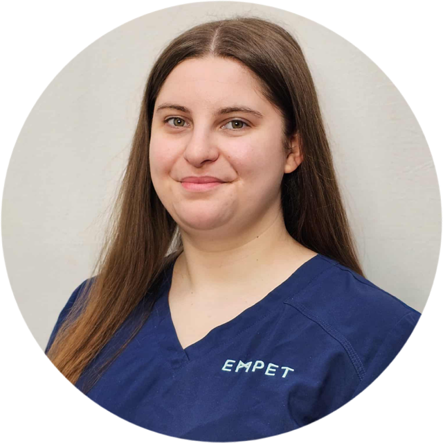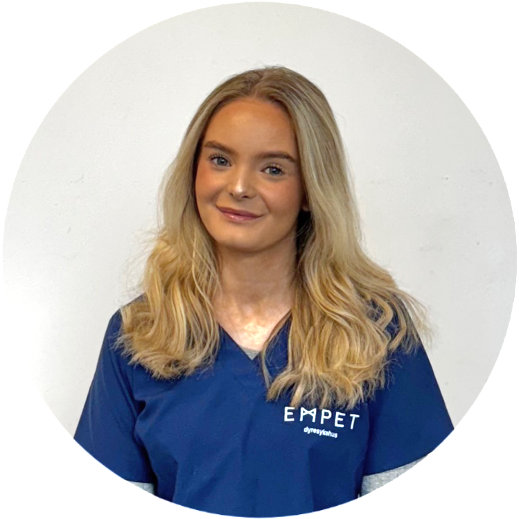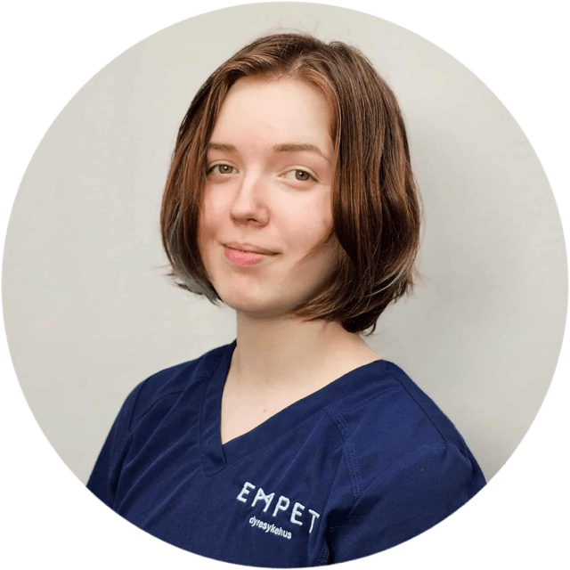 Elina fullførte sin utdanning som dyrepleier ved NMBU våren 2022. Hun har tidligere jobbet hos en annen Empet-klinikk i Oslo før hun kom til oss i August 2023. Hjemme har Elina to hunder av rasen Miniature American Shepherd som hun liker og trene agility med.