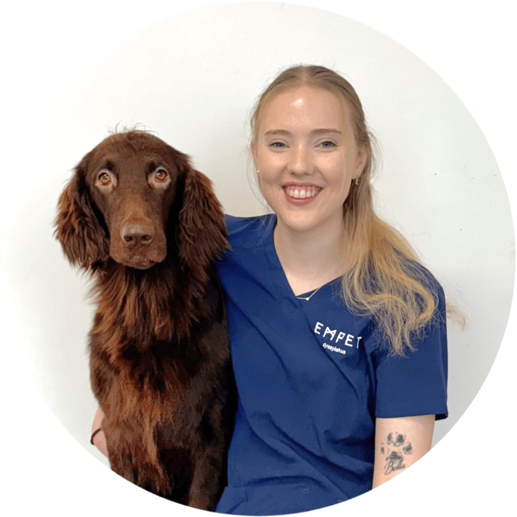 Anna begynte hos oss i September 2024. Anna har tidligere utdanning innenfor fysioterapi. Anna har vist stor interesse allerede og har stor omsorg for pasientene våres. Hjemme har hun to blandingshunder.