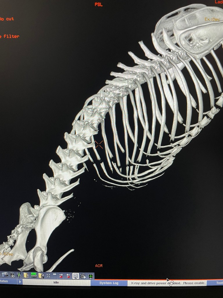 CT-scanning bruker røntgenstråler for å ta bilder av dyrets indre organer, bein og vev. Maskinen roterer rundt pasienten og tar flere bilder fra forskjellige vinkler, som deretter blir satt sammen av en datamaskin til et 3D-bilde. Dette gir oss muligheten til å se anomalier, svulster, og andre sykdommer som kanskje ikke er synlige med tradisjonelle røntgenbilder.