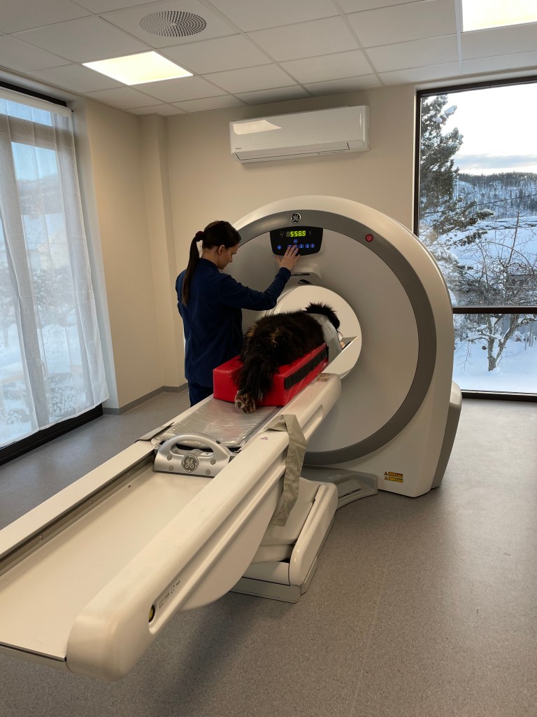 CT-undersøkelser er en rask og trygg prosedyre. Under undersøkelsen må dyret ligge helt stille, derfor brukes beroligende. Dyret kan ofte dra hjem samme dag.
