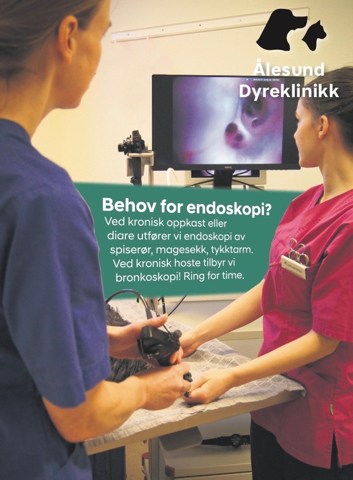 Vi har i mange år hatt tilbud om endoskopi og besitter derfor i dag mye erfaring innen dette området. Gastritt og magesår er åpenbart underdiagnostisert og vi anbefaler at gastroskopi foretas hyppigere. Endoskopi er nyttig verktøy når det oppstår fremmedlegemer i spiserør og magesekk. Ved kronisk hoste er det aktuelt med bronkoskopi. Da benytter vi et eget utstyr.